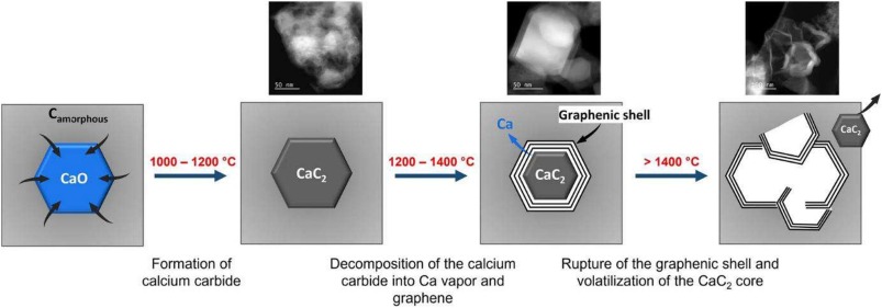 Solar pyrolysis provides high radiative flux focused on a small area, which is a key factor to turn carbons from carbonization to graphenization. In other words, this flux density improves BSUs coalescence and graphene layer flattening (from turbostratic to graphitic) which usually requires temperatures above 1600 °C.